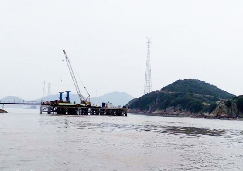 我國第一座3.4兆瓦潮流發電總成平臺施工場景
